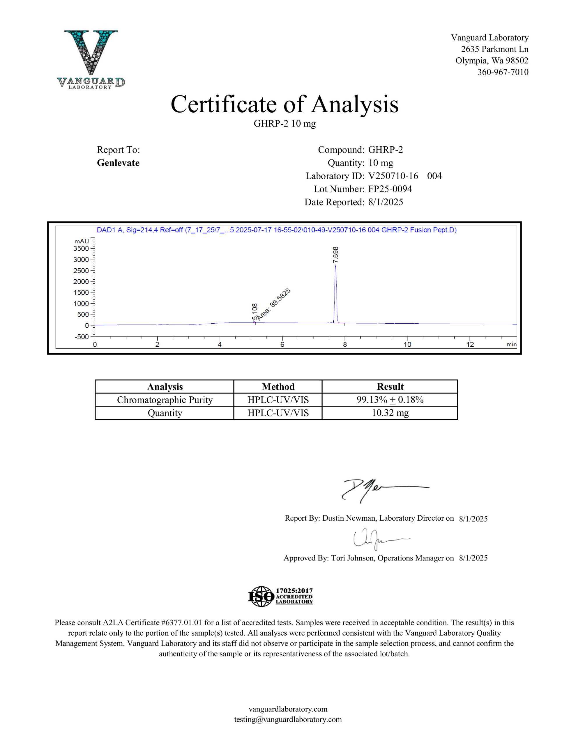 GHRP-2 is now available. Genlevate reviews every batch carefully because we ensure that each product is properly produced to include proper appearance and high purity.