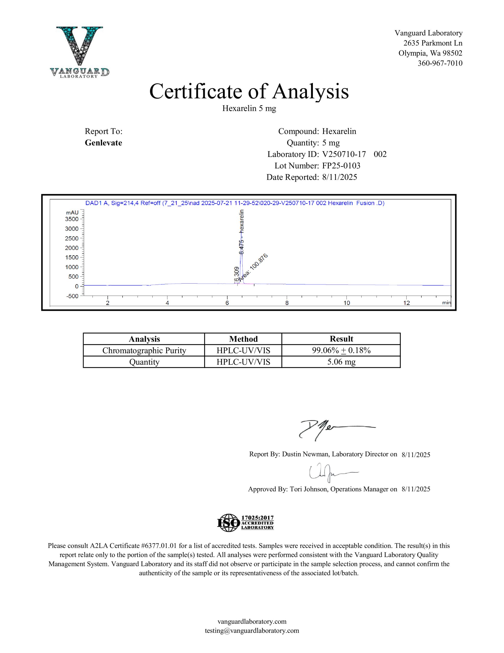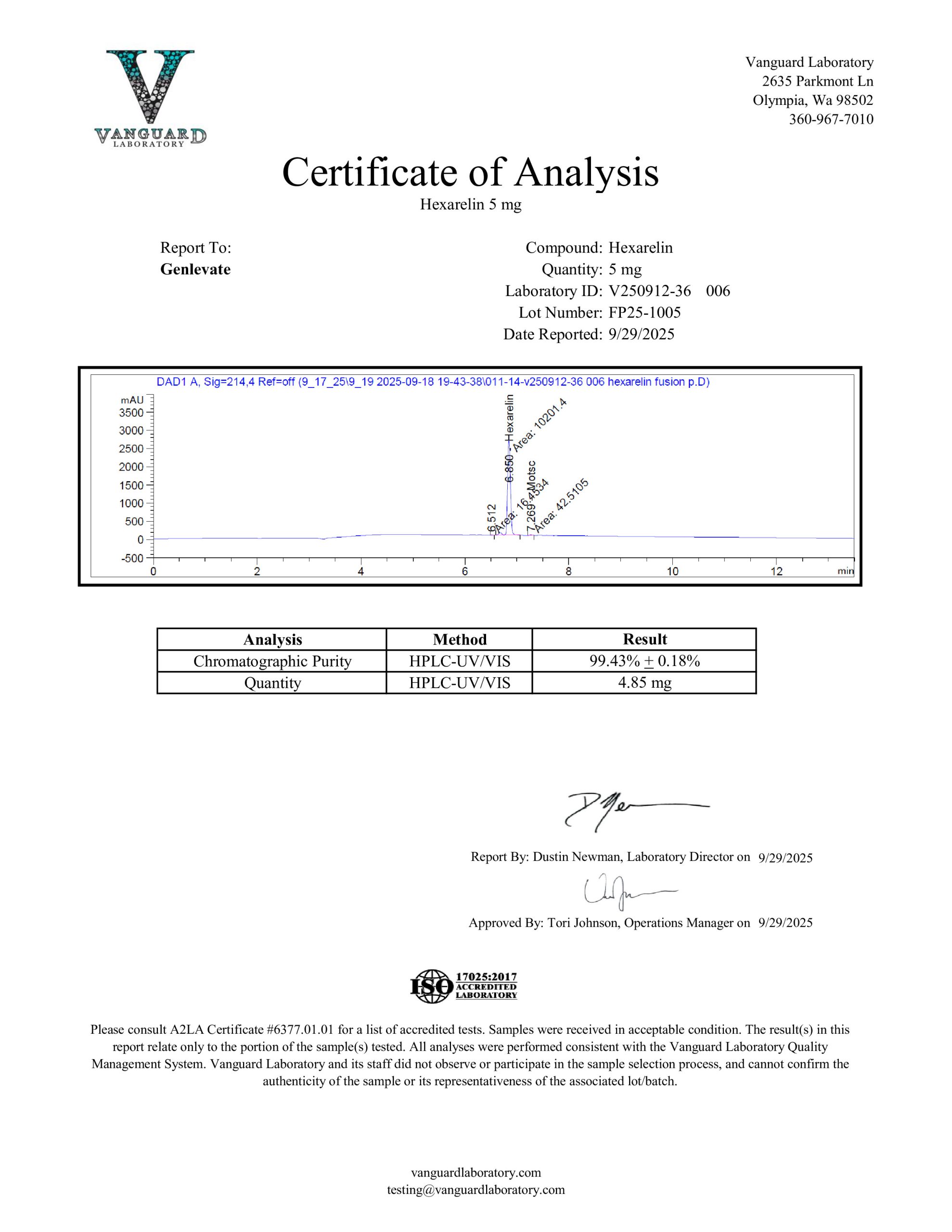Hexarelin is now available. Genlevate reviews every batch carefully because we ensure that each product is properly produced to include proper appearance and high purity.