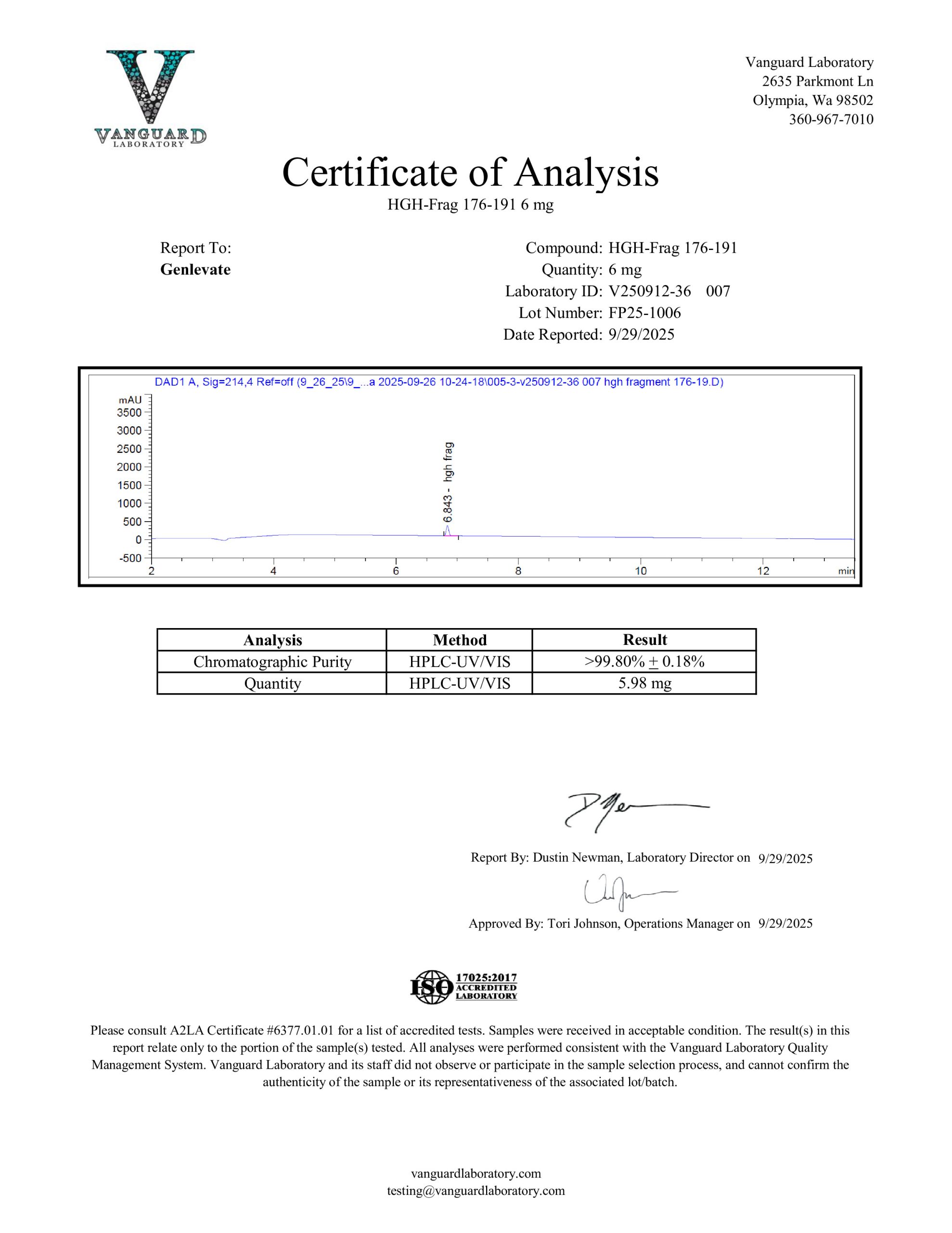 hGH FRAG 176-191 is now available. Genlevate reviews every batch carefully because we ensure that each product is properly produced to include proper appearance and high purity.
