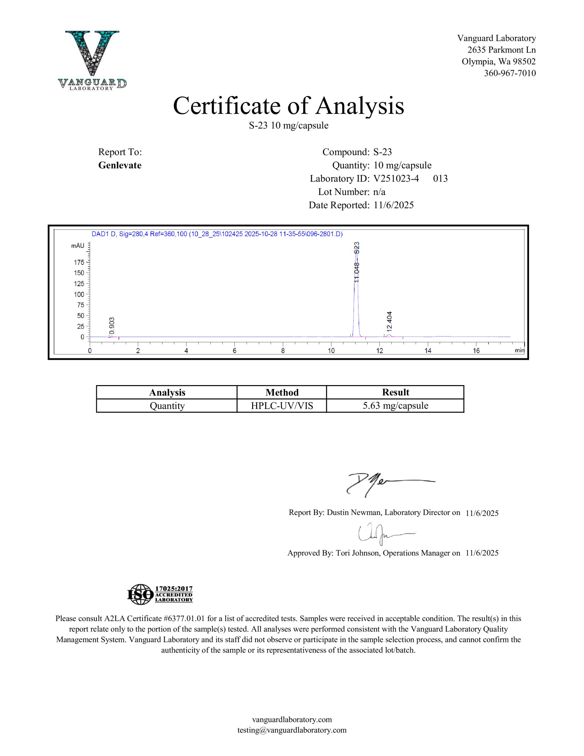 S23 capsules are now available. Genlevate reviews every batch carefully because we ensure that each product is properly produced to include proper appearance and high purity.